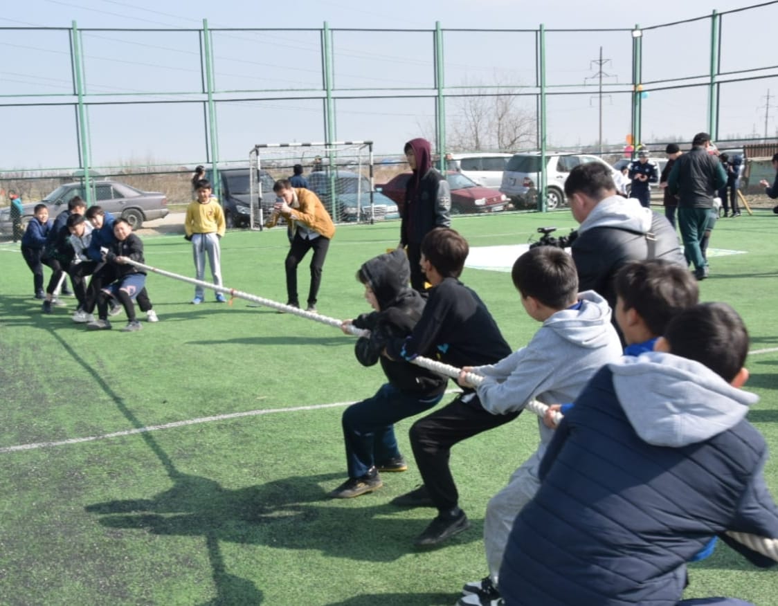 Бұдан кейін шаһар басшысы №4 аумақтық округтегі мерекелік думанға арнайы барды. Мұнда округ тұрғындары арасында асық ату, ләңгі тебу, қол күресі, күрес, арқан тартыс сынды түрлі спорттық ойындар ойнатылды. Сондай-ақ мерекелік дастархан жайылып, Наурыз тағамдары тарту етілді.