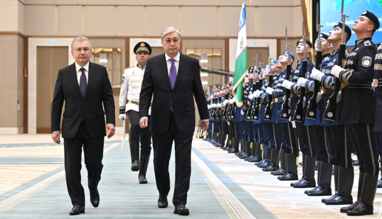 Президент Қасым-Жомарт Тоқаевты ресми қарсы алу рәсімі халықаралық конгресс орталығында өтті. Құрмет қарауылының бастығы екі ел басшыларына рапорт беріп, Қазақстан мен Өзбекстанның Әнұрандары орындалды.