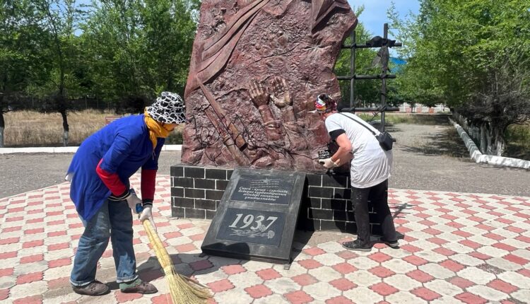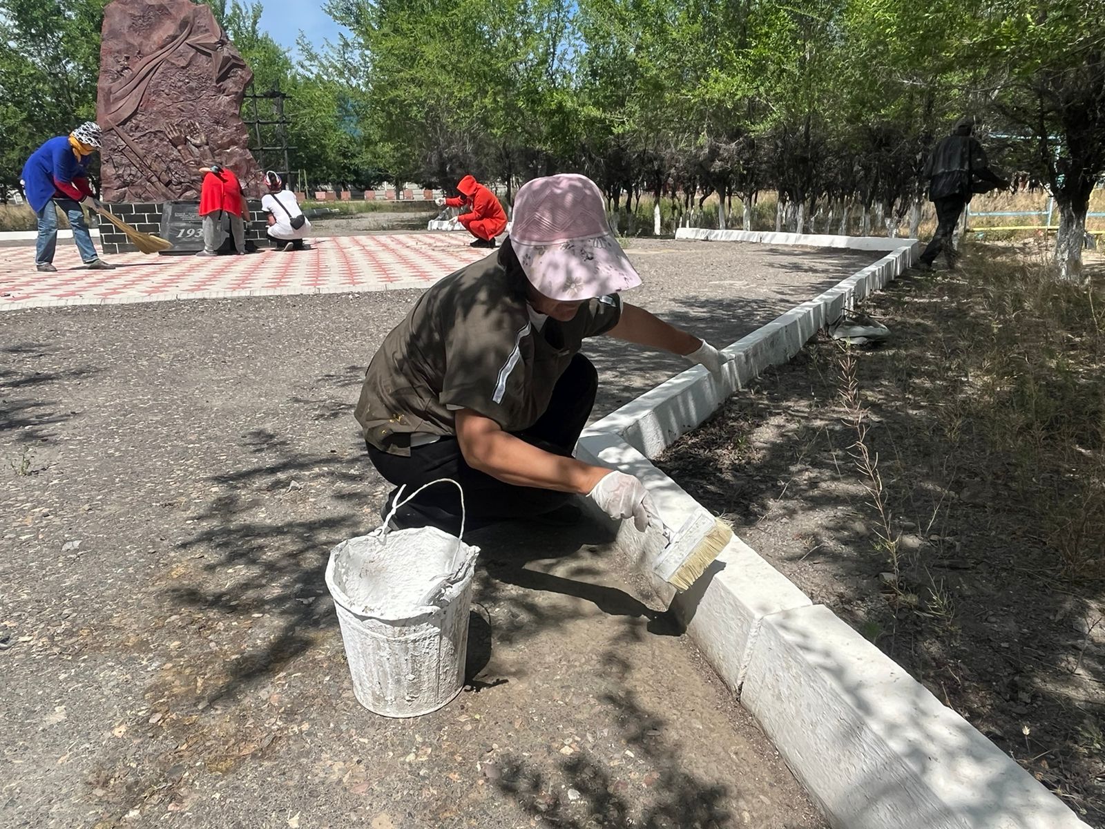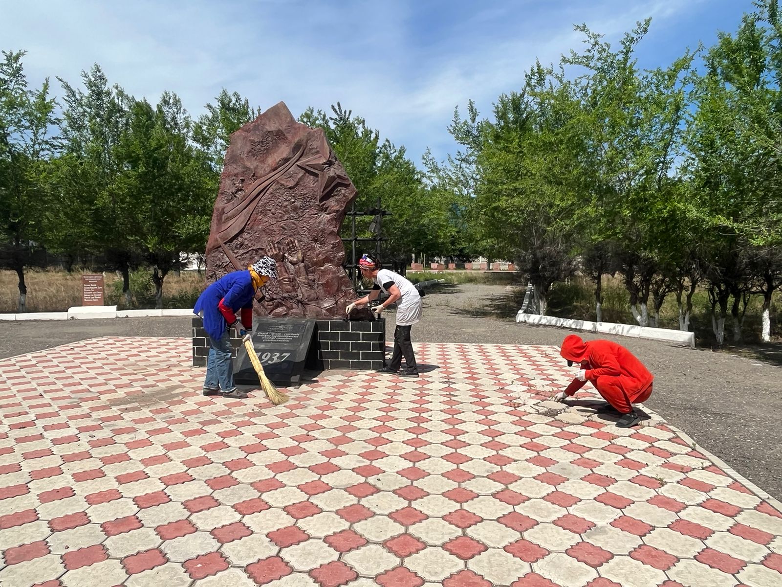 Ескерткіш айналасын абаттандыру жұмыстарына ауыл тұрғындары, жас спортшылар мен белсенді жастар бір кісідей жұмылып, қарқынды жұмыс жүргізді.