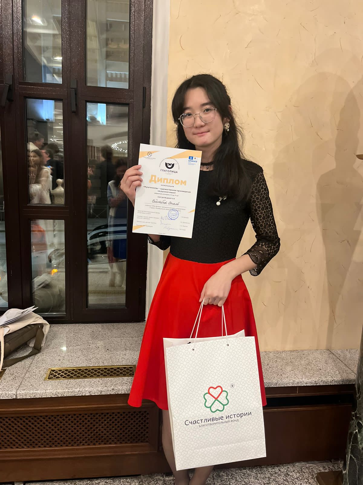 Сейтбек Анель, ученица 12 «Е» класса, приняла участие в творческом конкурсе по присуждению международной детской литературной премии «Глаголица». Руководителем ученицы стала Белозерова Ольга Игоревна, учитель русского языка и литературы. Конкурс проходил в несколько этапов.
