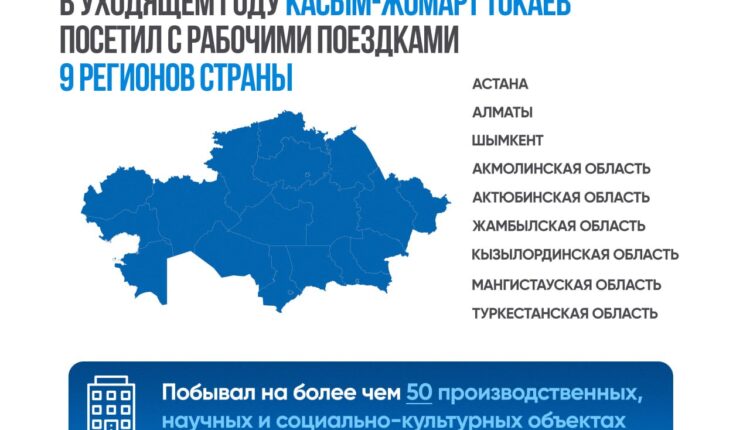 Касым-Жомарт Токаев посетил с рабочими поездками 9 регионов страны, где побывал на более чем 50 производственных, научных и социально-культурных объектах.