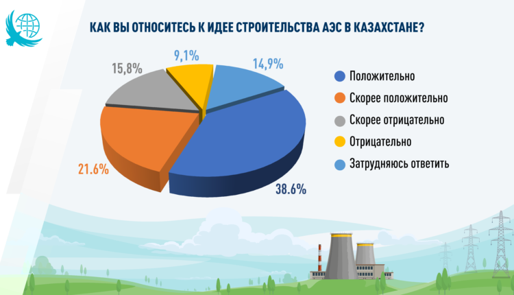 В целом 60,2% казахстанцев положительно относятся к идее строительства АЭС в Казахстане. Из них 38,6% – положительно, 21,6% – скорее положительно. По сравнению с предыдущим опросом, проведенным в августе, число сторонников идеи строительства АЭС выросло с 53,1 до 60,2%.