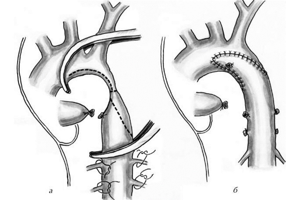 Коарктация аорты представляет собой локализованное сужение просвета аорты, которое приводит к гипертензии в сосудах верхних конечностей. Может развиться молниеносная сердечная недостаточность и шок.