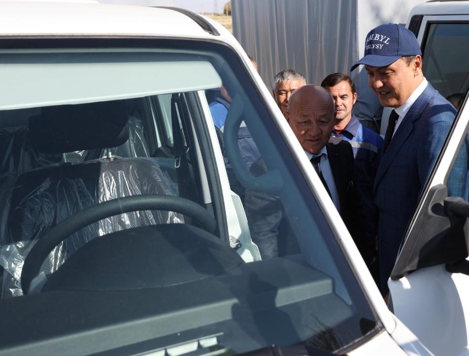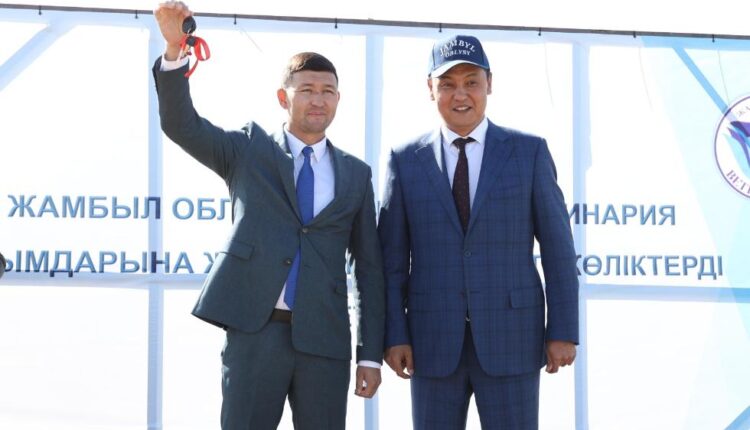 Жамбыл облысының әкімі Ербол Қарашөкеев өңірдегі ветеринариялық ұйымдарға автокөлік табыстау рәсіміне қатысты.