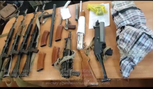 Бұдан басқа, Жамбыл облысы Полиция департаментінің қызметкерлері 2022 жылдың 16 қазанында облыс орталығының аумағында «Калашников» маркалы автоматы, «ТОЗ-63» қос ұңғылы аңшылық мылтығы, «ИЖ-58» 16 калибрлі қос ұңғылы мылтықтың және 5.45 калибрлі 90-нан астам патронның кесіндісі тәркіленген қару-жарақ қоймасын анықтады. Сот-баллистикалық сараптама тағайындалды.