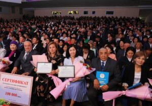– Өткен оқу жылы республикалық, халықаралық байқауларда 4557 мұғалімнің жеңімпаз боп танылуы, дарынды оқушыларымыздың халықаралық, республикалық олимпиадалар мен ғылыми байқауларда 217 медальді, шығармашылық және спорттық додаларда 1490 жүлделі орындарды иеленуі – облыс ұстаздарының тынымсыз еңбегінің нәтижесі деп білемін. Осы орайда, облысымыздың білім беру саласында абыройлы қызмет етіп жатқан 40 мыңға жуық мұғалімдерге өз алғысымды жеткізгім келеді,-дей келе облыс әкімі аймақты білім саласын жетілдіруге қосып жүрген бір топ педагогтерді марапаттады.