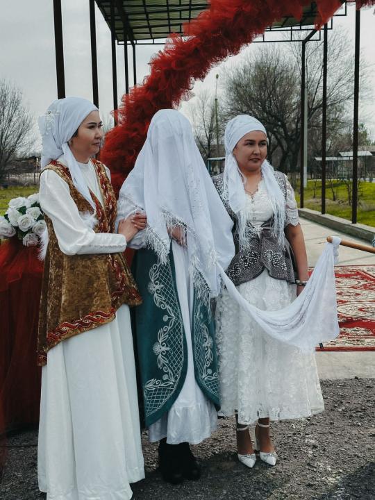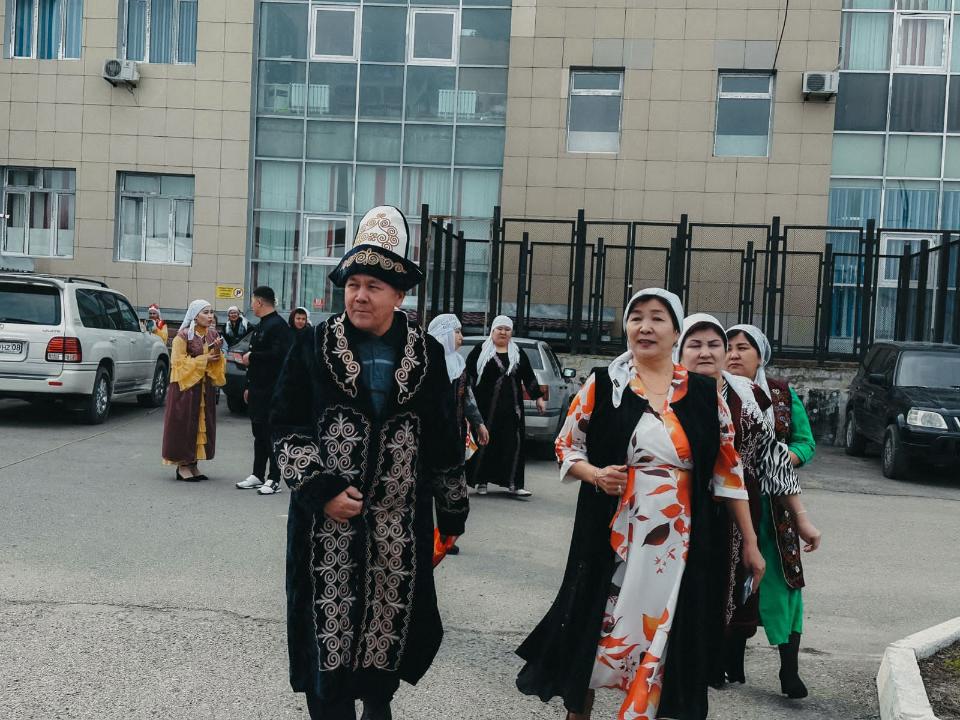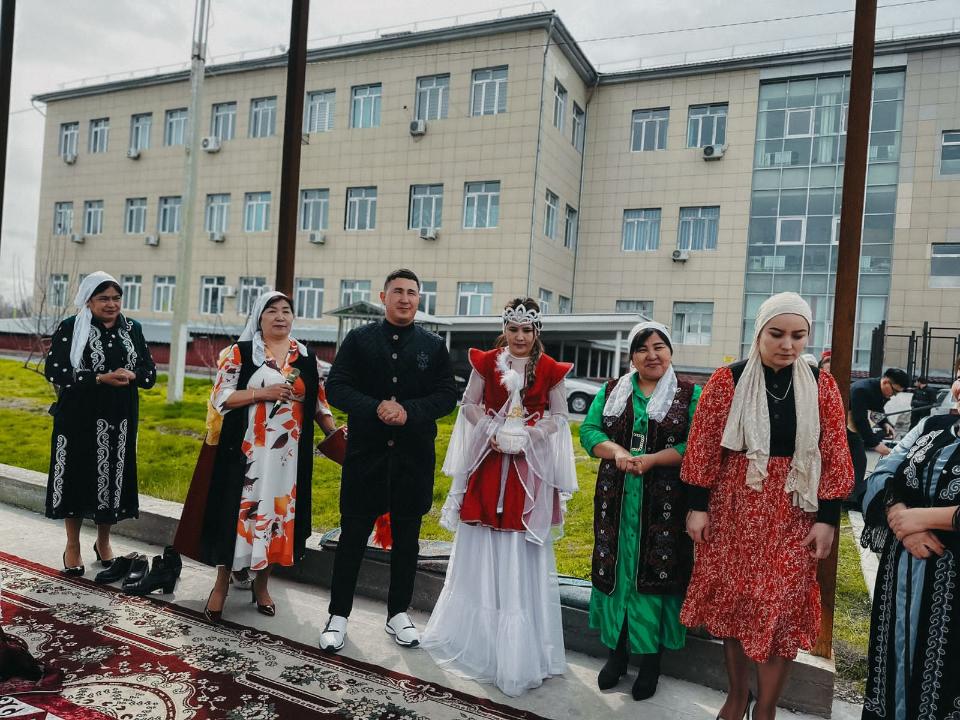 Ұлттық нақышта киінген ақ халатты абзал жандар «Қыз ұзату», «Сырға салу», «Беташар» салт-дәстүрлерінен қойылым қойып, емханаға келушілерге мерекелік көңіл күй сыйлады.