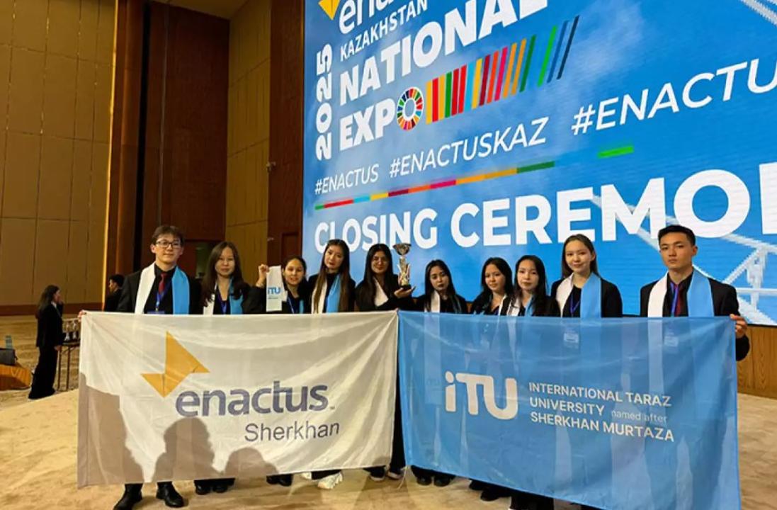 Астана қаласындағы Тәуелсіздік сарайында өткен «Enactus Kazakhstan National Expo 2025» ұлттық байқауында Шерхан Мұртаза атындағы Халықаралық Тараз университетінің «Enactus Sherkhan» командасы «Early Stage» лигасында сәтті өнер көрсетіп, жарыстың финалисі атанды.