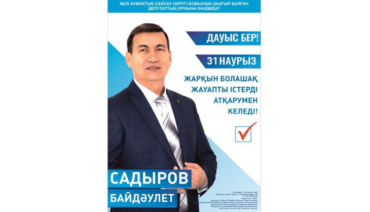 Мен, Садыров Байдаулет Әбукәрімұлы, қалалық мәслихат депутаттығына кандидат ретінде сайлауға түсуге бел буып, тұрғындар өмірін жақсартуды, осы бағытта қызмет етуді мақсат тұтып отырмын.