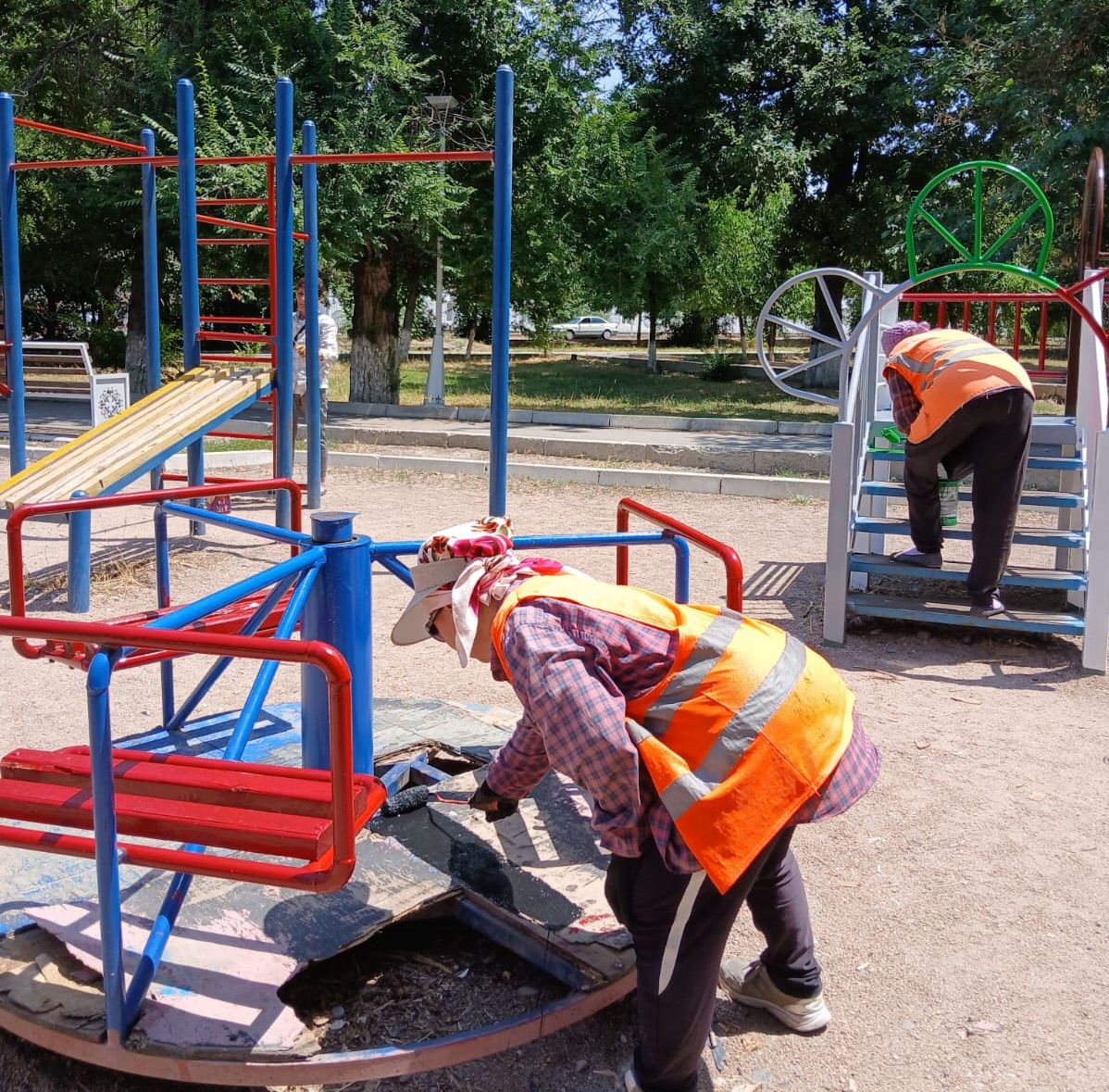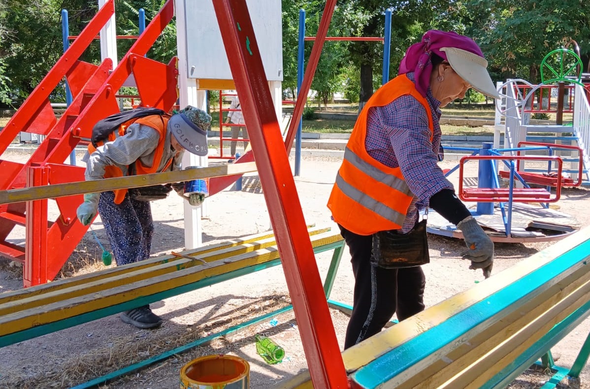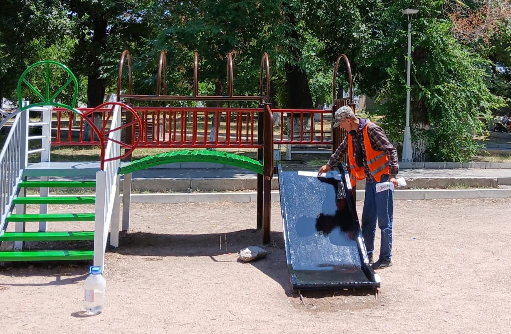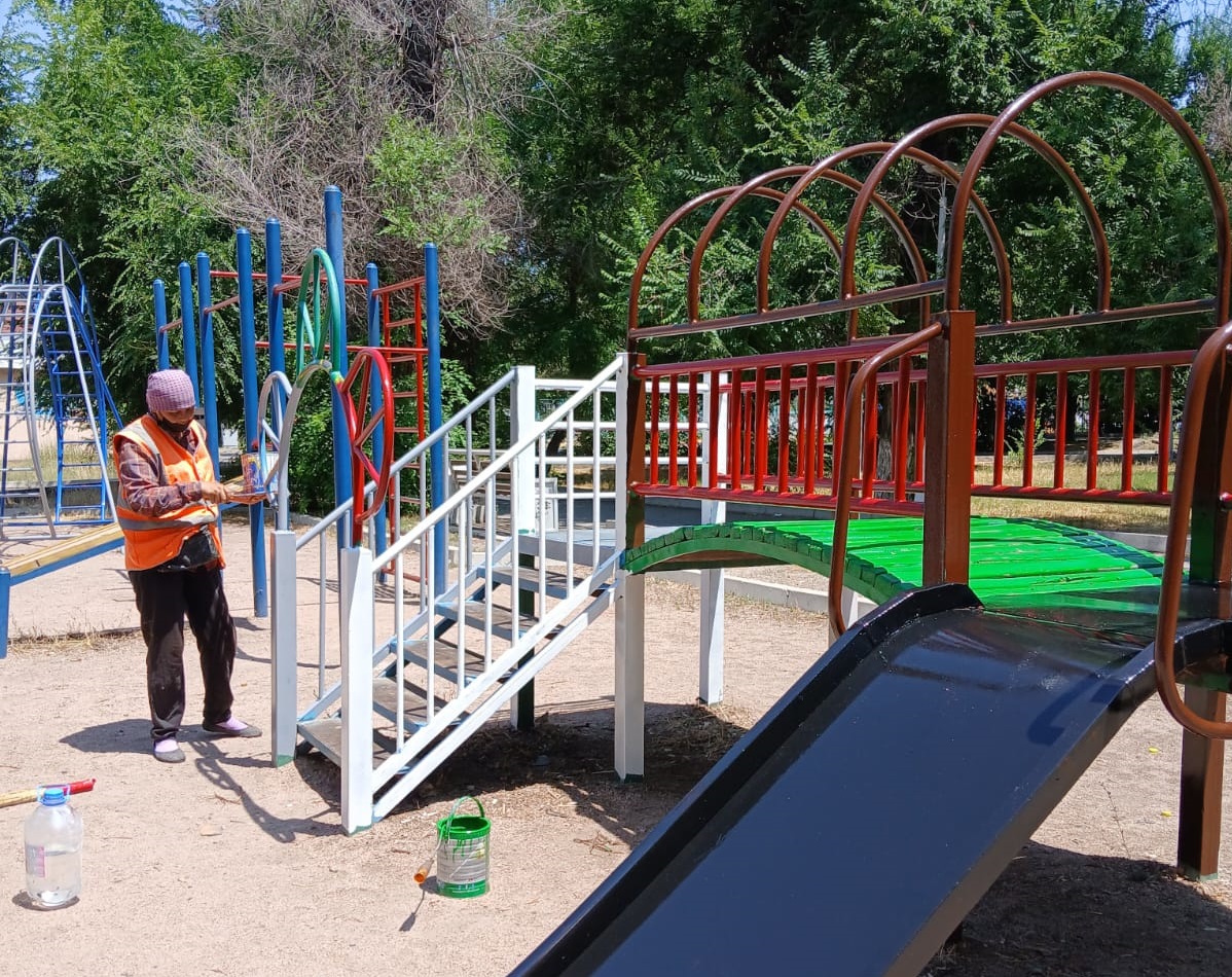 Қалада тазалық жұмыстары күн сайын істелуде. «Жасыл ел-Тараз» жұмысшылары қала аумағындағы балалар ойын алаңшаларын сырлау, гүлдер мен гүлзарларды күтіп-баптау жұмыстарын атқаруда.