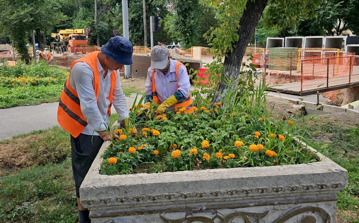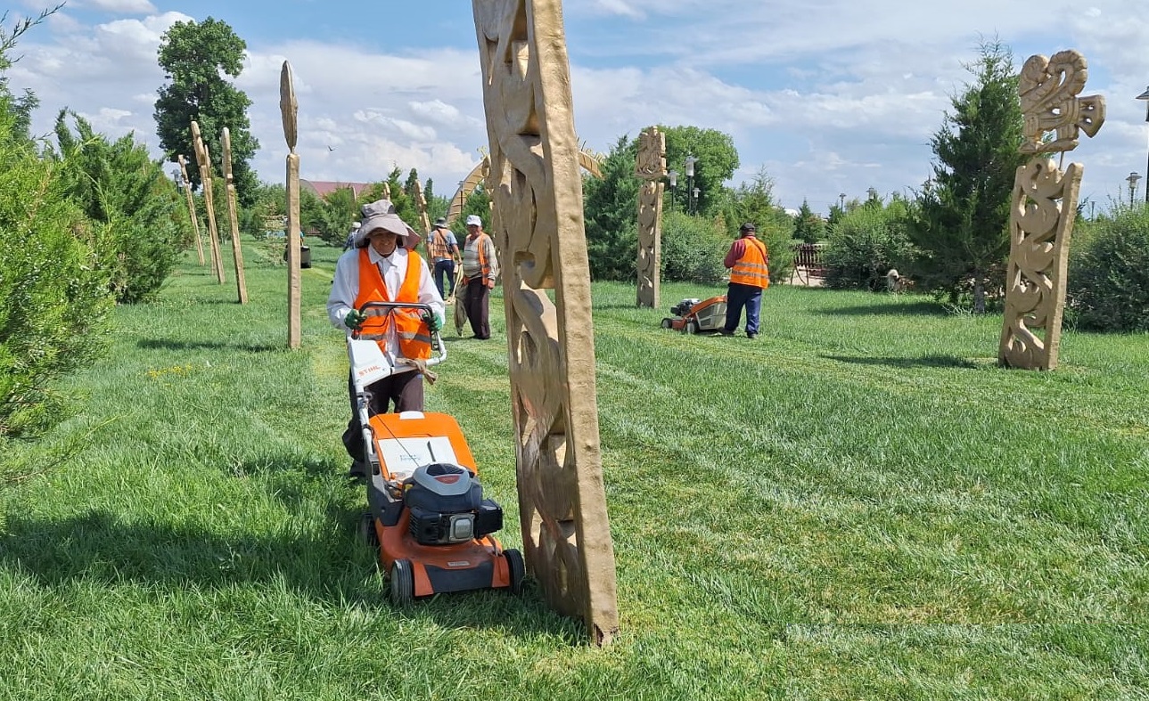 Сонымен қатар айналаға сән беріп тұрған жасыл желектің де күтімін жасылелдіктер атқаруда.