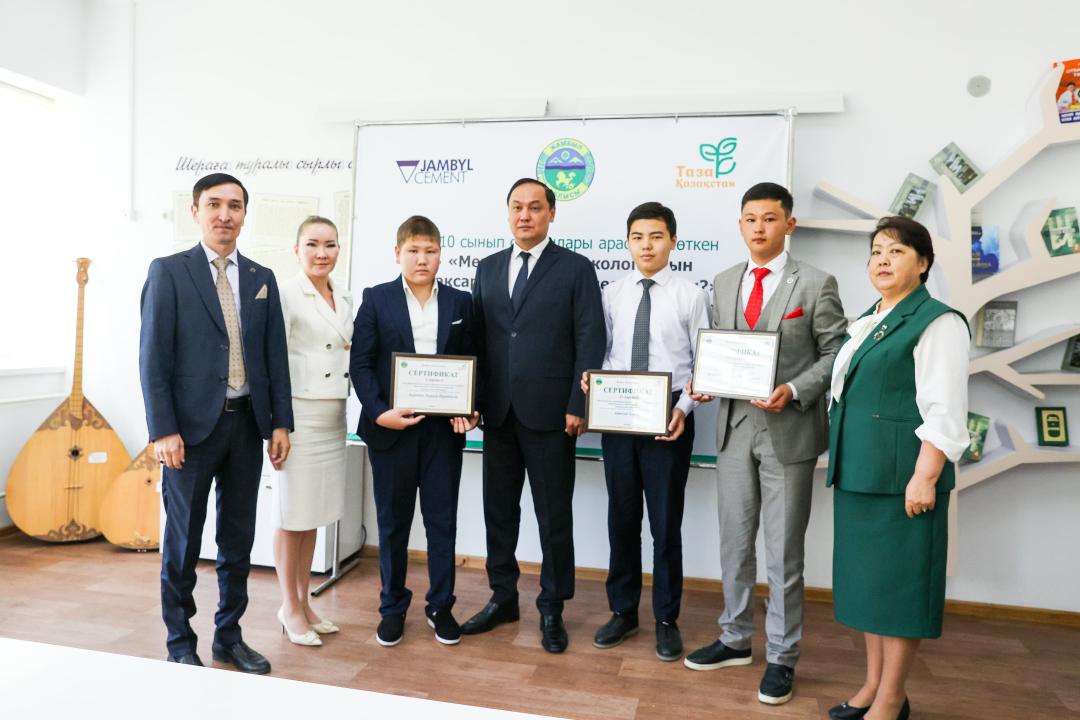 Сонымен қатар «Таза Қазақстан» республикалық экологиялық акциясы аясында ұйымдастырылған «Мен Қазақстан экологиясын жақсартуға қандай үлес қосамын?» атты облыстық шығармалар байқауының жеңімпаздары марапатталды. Аталған байқауда 2 530 оқушы бақ сынап, оның ішінде 3 үздік шығарма иесі – Т. Рысқұлов ауданынан Нұрәли Керімбек, Жуалы ауданынан Айдын Артықбай және Тараз қаласынан Заңғар Айтбай жеңімпаз атанды. Облыс әкімі жеңімпаздарға велосипед сертификаттарын табыстады.