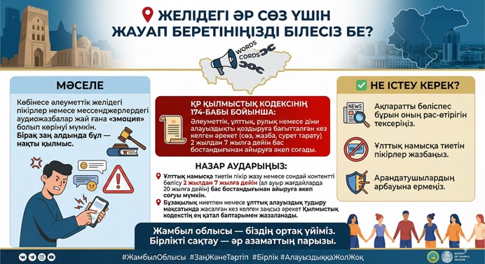 Көбінесе әлеуметтік желідегі пікірлер немесе мессенджерлердегі аудиожазбалар жай ғана «эмоция» болып көрінуі мүмкін. Бірақ заң алдында бұл — нақты қылмыс.